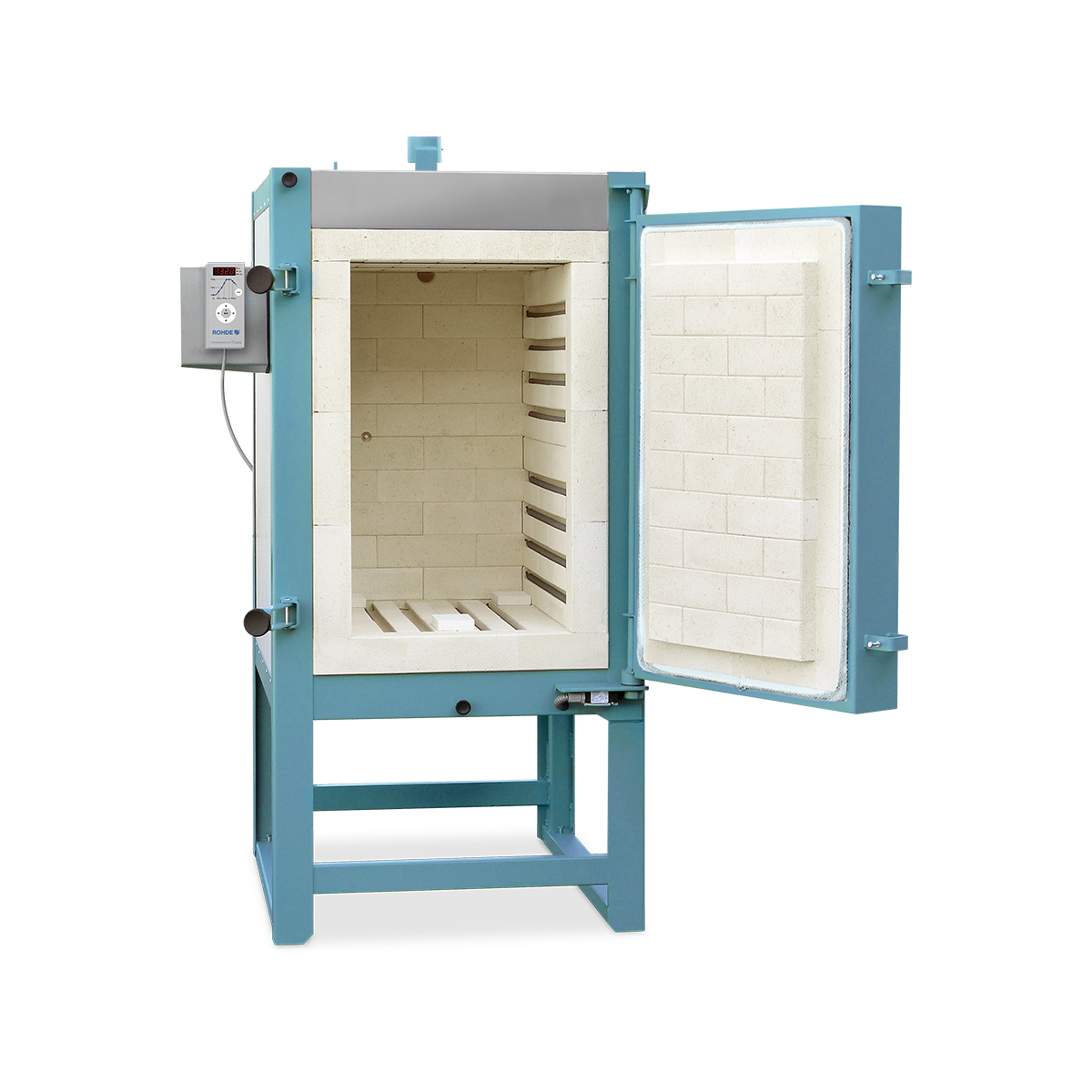 Die einzigartigen technischen Merkmale der ROHDE Kammeröfen sind auch in der Serie KE-B unverkennbar. Die Hinterlüftung der gesamten Stahlkonstruktion verhindert Korrosion und führt zu niedrigen Außentemperaturen. Zudem wird die bewährte Deckenkonstruktion „System ROHDE“ auch in der Serie KE-B verbaut.