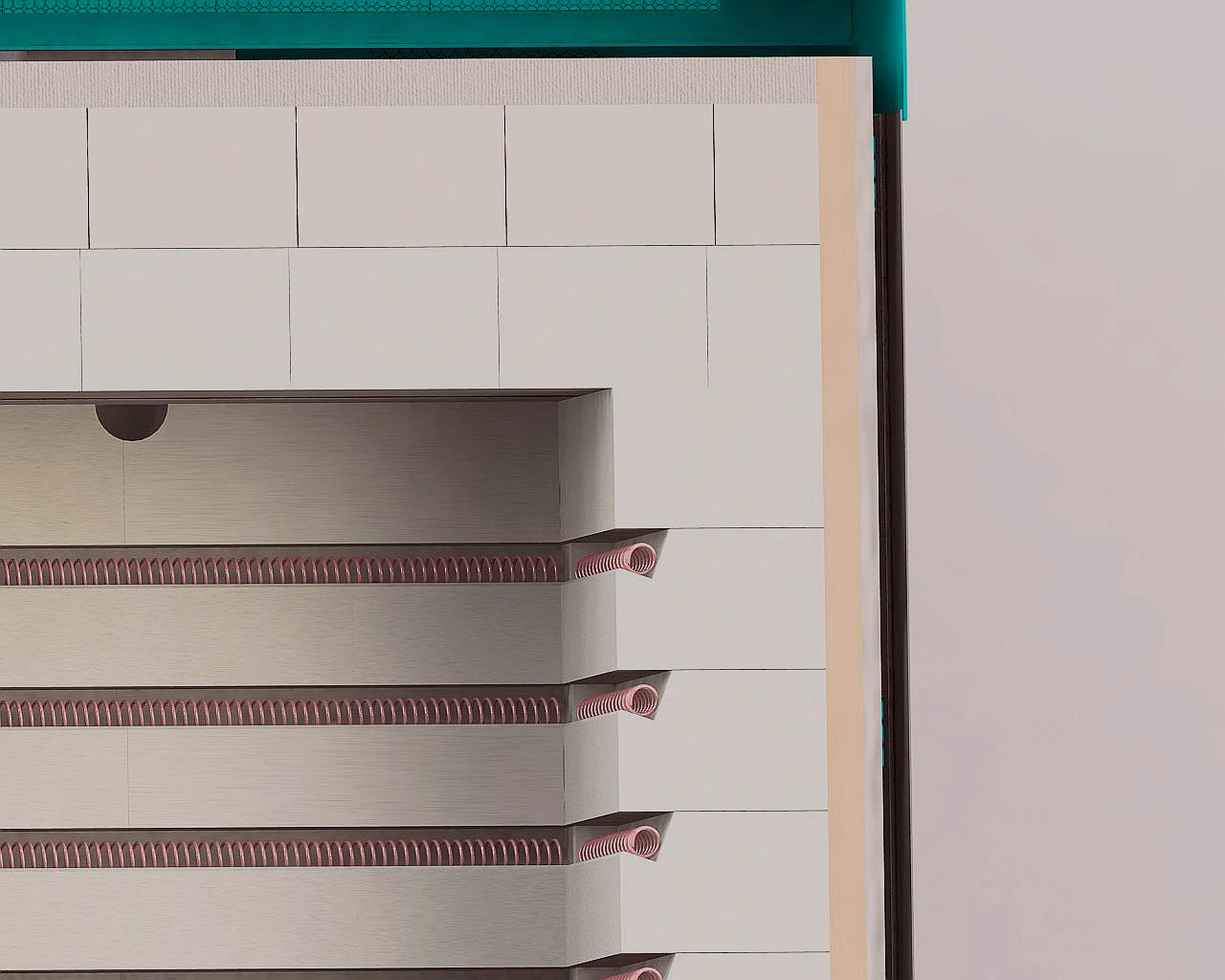 - Heizelemente im überarbeiteten Rillenstein geschützt montiert